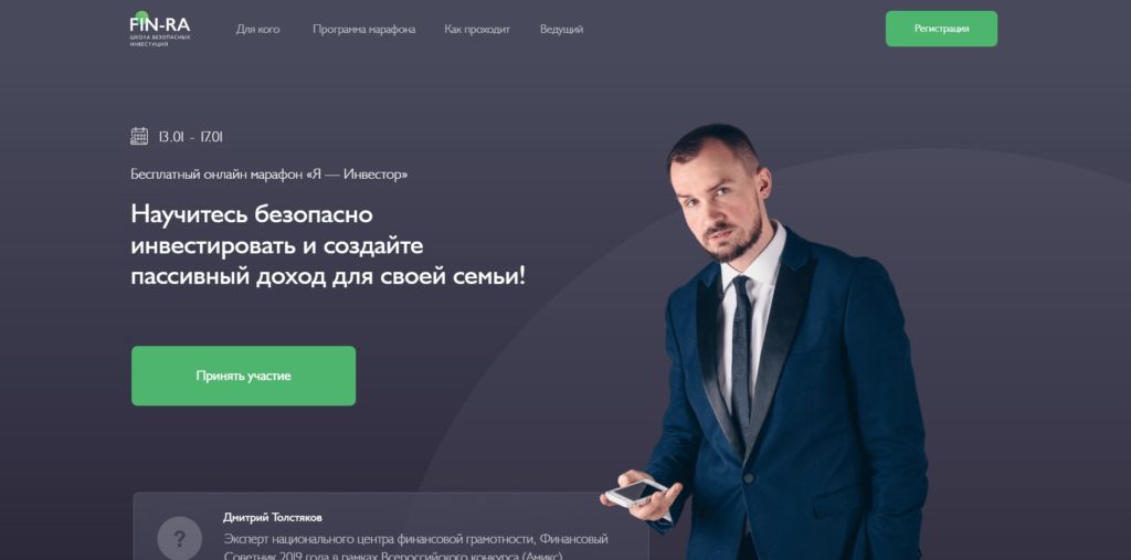 Fundado pelo especialista do Centro Nacional de Alfabetização Financeira Dmitry Tolstyakov. Projetado para cinco dias, durante os quais os alunos recebem conhecimentos básicos na área de conceitos gerais relacionados a investimentos, análise de mercado. São considerados os tipos de investimentos e os principais erros cometidos no mercado de ações. A abertura da primeira conta de corretagem e a compra da primeira ação estão em andamento, e esse início pode ser usado para um maior desenvolvimento desse setor.