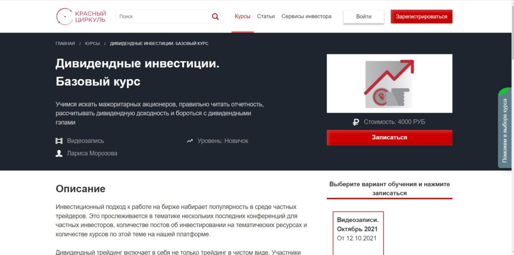 O curso básico da experiente professora Larisa Morozova fornecerá o conhecimento inicial necessário sobre a possibilidade de obter renda por meio de dividendos. O tamanho ideal do capital inicial é considerado, os riscos são estudados em detalhes. Custo - 4000 rublos.