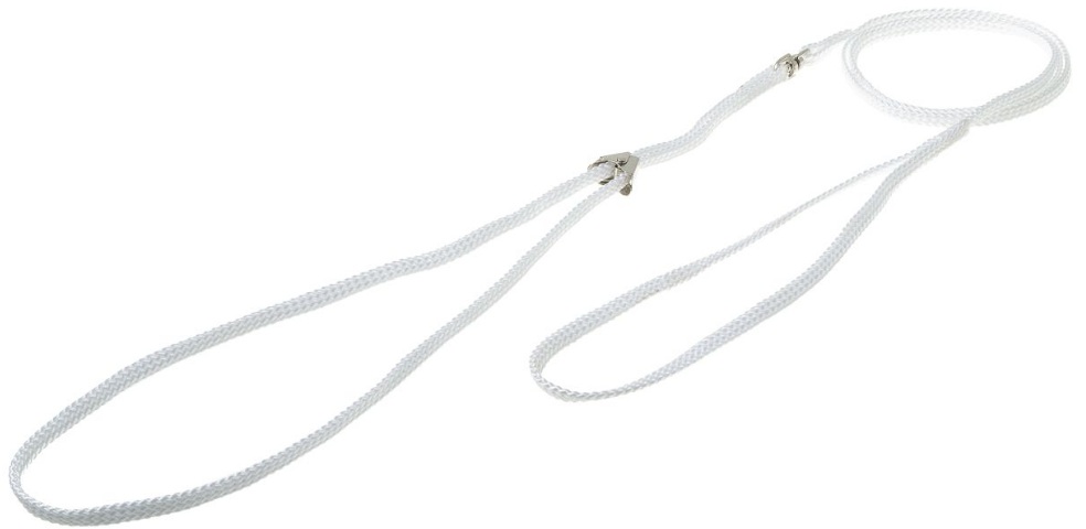 O arnês é usado para caminhar e treinar. Na maioria das vezes, esta é uma fita comum, feita de material durável, em uma extremidade da qual há um laço, na outra - um mosquetão para conectar ao colar. Para cães de raças grandes, uma trela de laço é melhor (especialmente durante os exercícios).