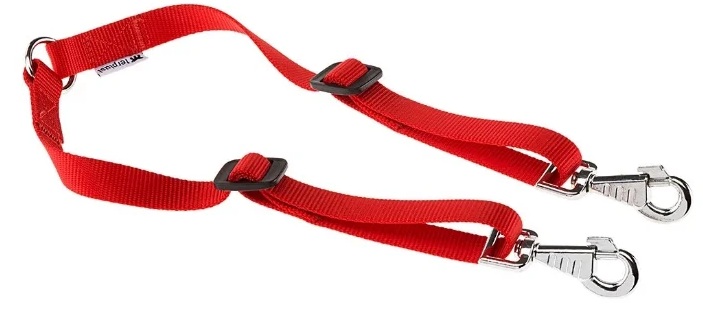 Acessório de reaperto, pode ser usado como trela para 2 cães, comprimento médio ou maior de uma alça regular, trela "sobre o ombro".