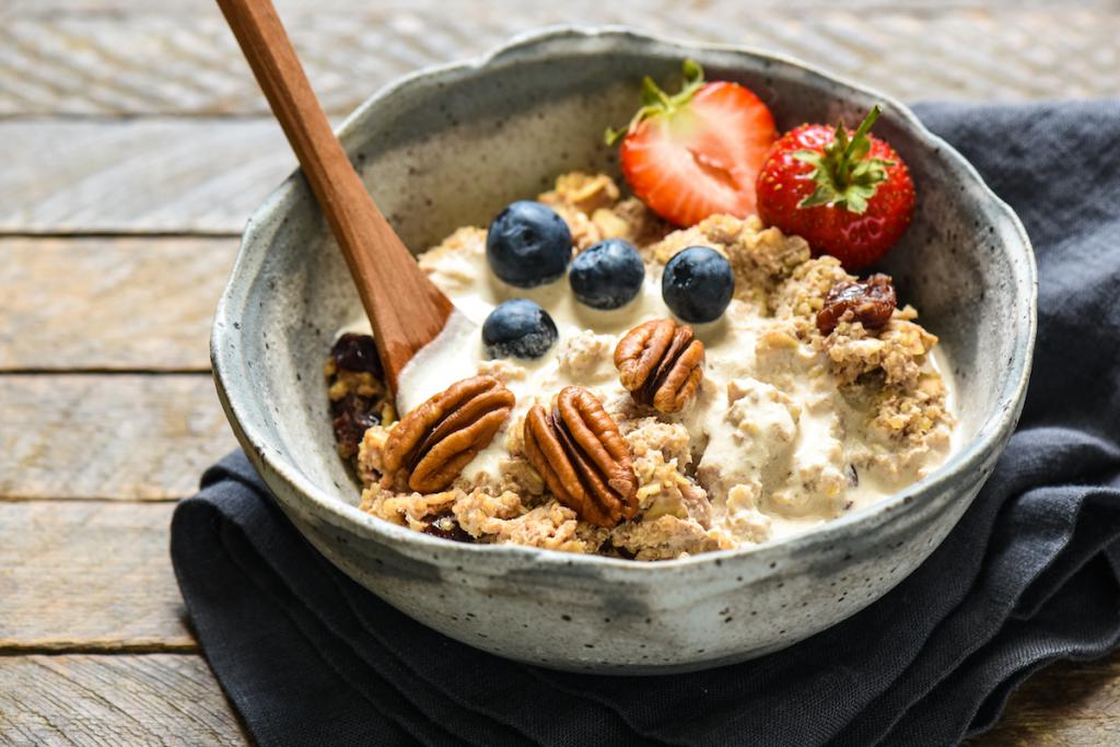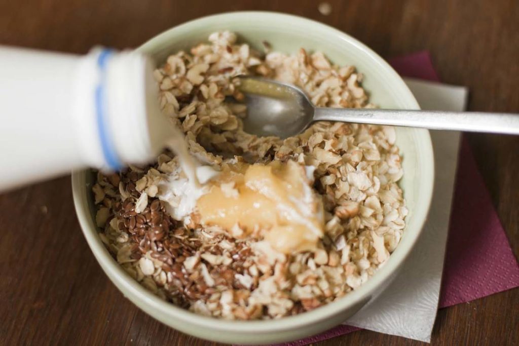 A aveia é baixa em calorias, rica em fibras e proporciona uma sensação de saciedade por muito tempo. Uma refeição feita com mingau, mel e frutas frescas reduzirá o desejo por doces não saudáveis e, ao mesmo tempo, fará com que você sinta fome por muito tempo.