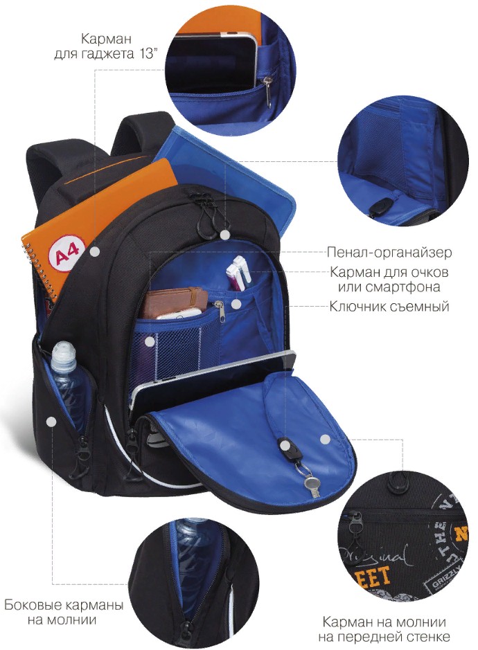 A bolsa Grizzly RU-235-2 é uma bolsa jovem para homens que foi desenvolvida pela empresa para adolescentes, mas também será uma excelente opção para adultos com altura entre 140 e 160 cm. para estudar ou praticar esportes. Homens adultos compram este modelo para trabalho, passeios pela cidade e turismo.