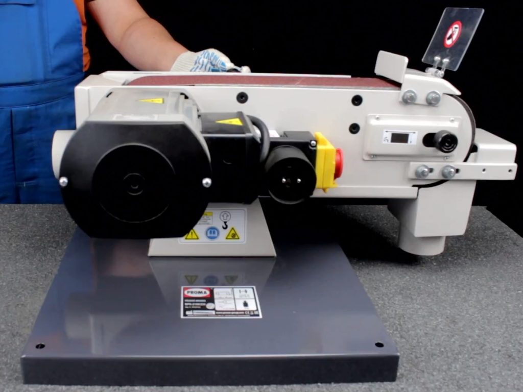 O 1º lugar é ocupado por um dispositivo universal, que é um produto profissional para retificar peças metálicas (tubos e perfis). Se você aumentar a velocidade da correia de 23,5 para 47 m/s, a potência do dispositivo aumenta de 2,5 para 3,3 kW.