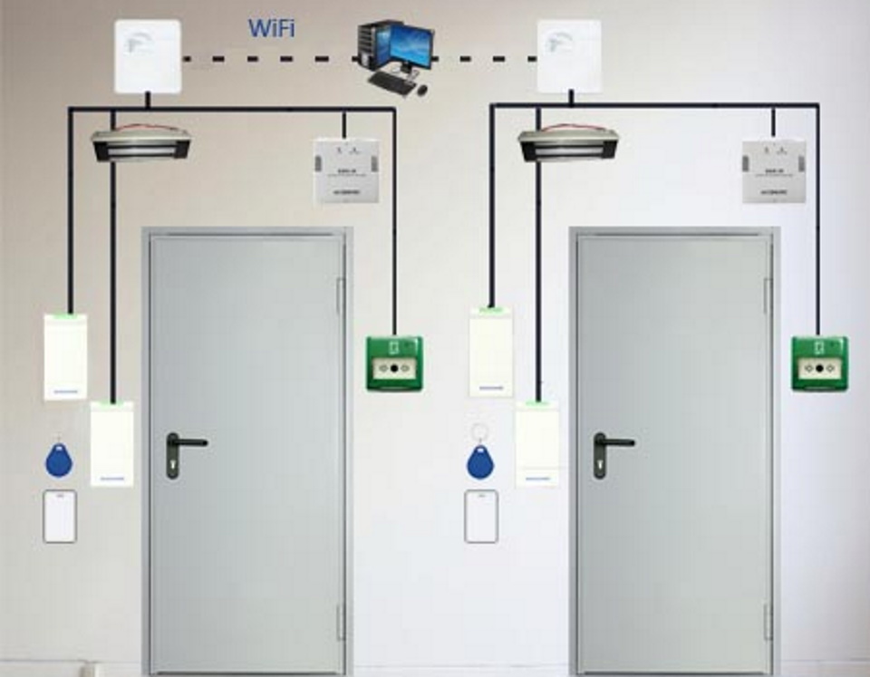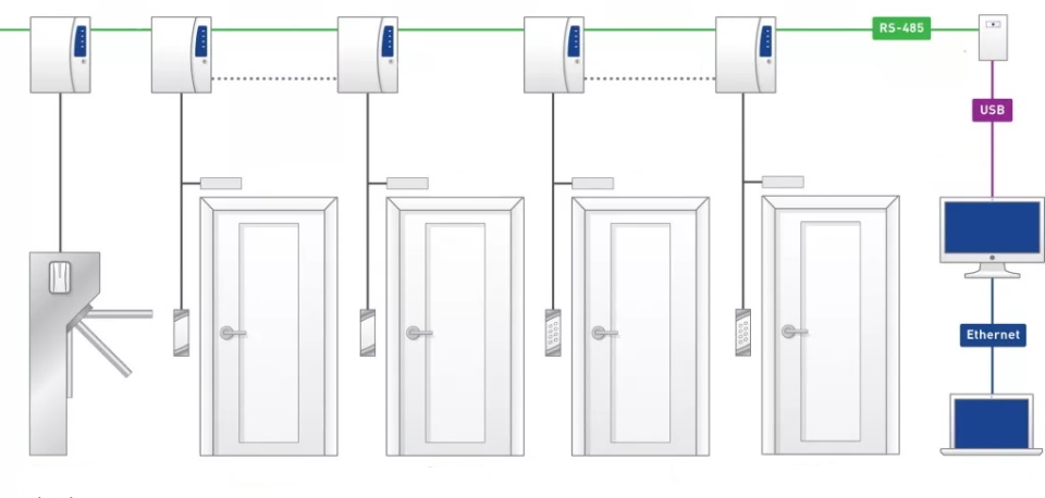 Dispositivos para inserir dados ou ler informações são instalados perto da entrada da área fechada. Em seguida, o material é transferido para os controladores de acesso para análise e a devida reação - abrir ou bloquear a porta, acionar o alarme ou registrar a presença do funcionário ali.