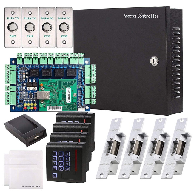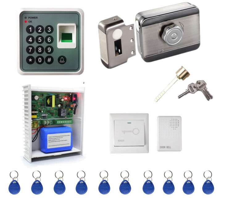 O funcionamento do dispositivo, fechaduras elétricas e outros dispositivos é fornecido por uma fonte de alimentação embutida. Ele vem em uma caixa de plástico durável com espaço para uma bateria de backup.