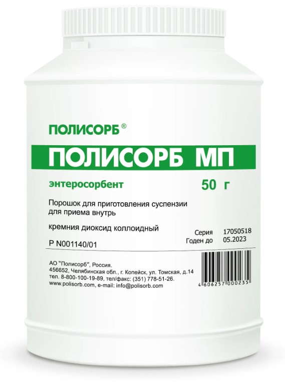Enterosorbente. A substância ativa é o dióxido de silício coloidal. Atribuir para diarréia, intoxicação de adultos e crianças, manifestações alérgicas, dermatológicas. Produzido na forma de pó para a preparação de uma suspensão, em frascos e sachês. A quantidade necessária de pó depende do peso corporal. Produtor - Polysorb MP, Rússia. Custo - a partir de 165 rublos. (garrafa 12 g) até 377 rublos. (banco 50g).