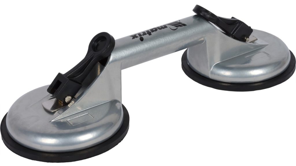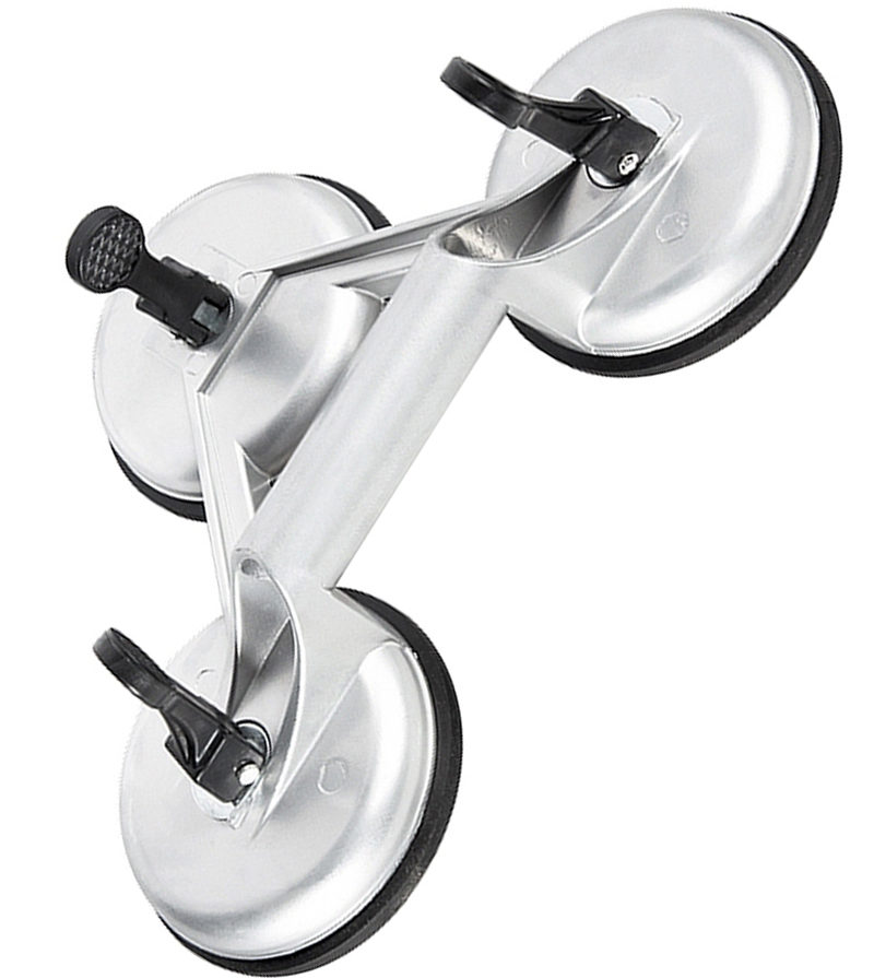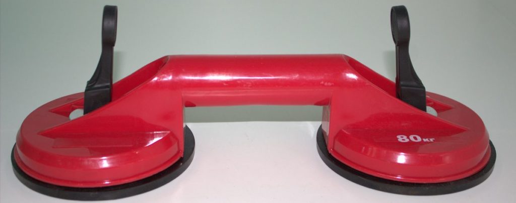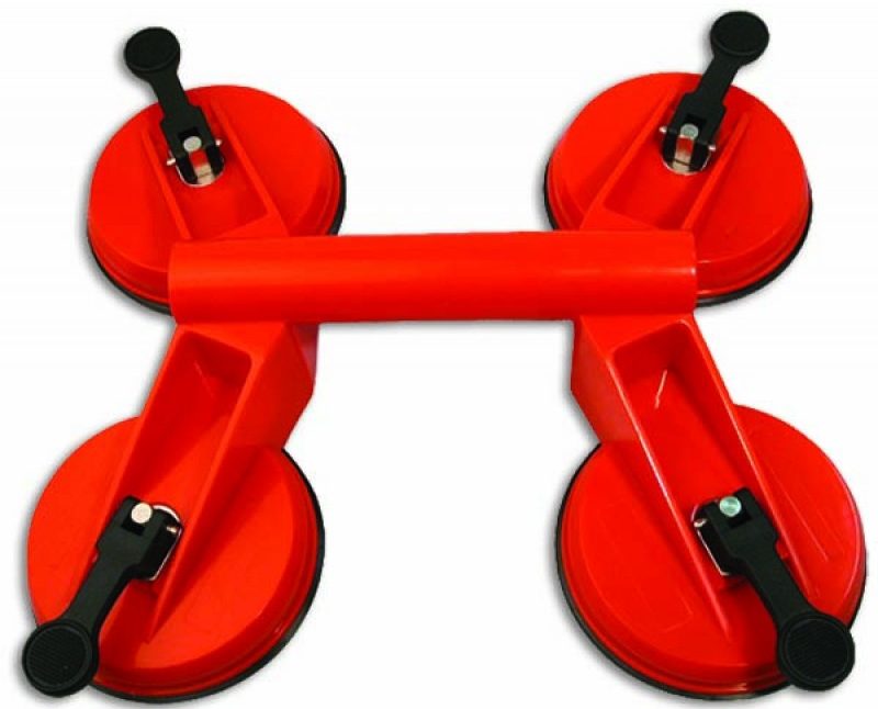 Macaco de vidro profissional com capacidade até 150 kg. Feitas de plástico reforçado, as ventosas são feitas de borracha do tipo elástico. A localização das ventosas permite a maior cobertura da superfície, o que simplifica o transporte.