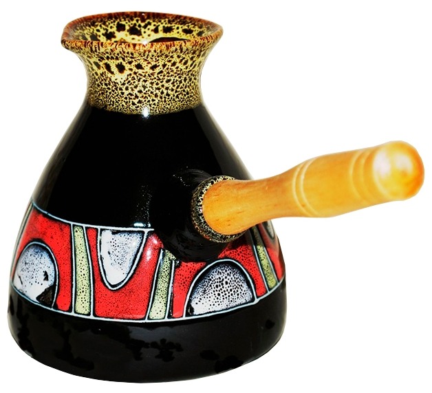 Este tipo de panela de cerâmica tem uma alça isolante de calor, que não permitirá que você se queime ao preparar café com leite ou café expresso. O cezve em si é feito em estilo étnico. Devido ao material mais denso, o cezve não aquece imediatamente, liberando um aroma rico e conferindo à bebida um sabor especial.