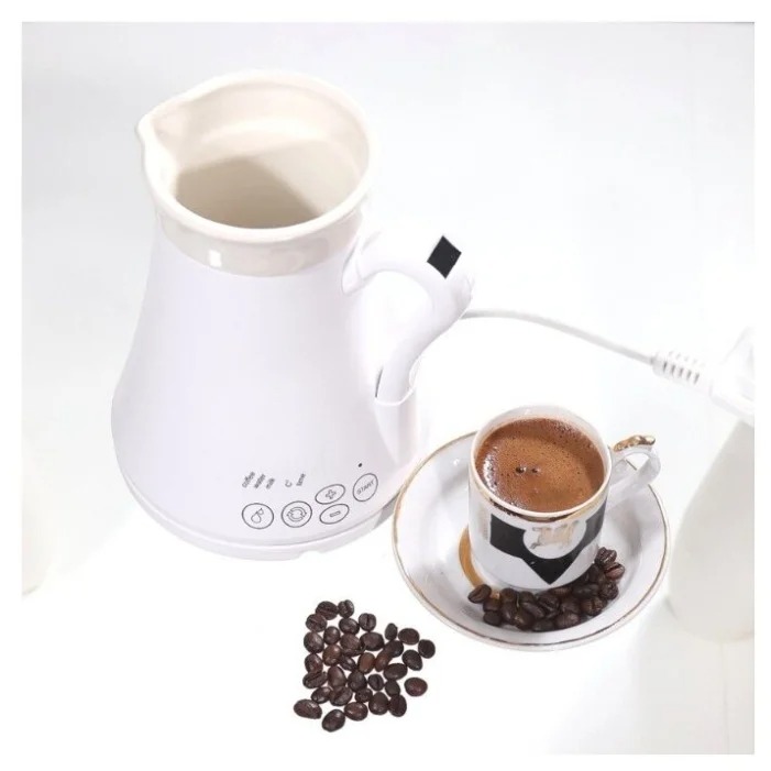 Uma panela elétrica especial turca que combina um revestimento de plástico, um elemento de aquecimento em aço inoxidável e uma tigela de líquido em cerâmica. Existe um aplicativo Timecup Commander com funcionalidade Bluetooth. Devido à presença de um detalhe natural. A bebida mantém todas as propriedades úteis, sem o sabor de plástico queimado. E o display OLED informativo permite controlar totalmente o próprio processo de cozimento.