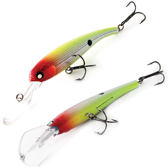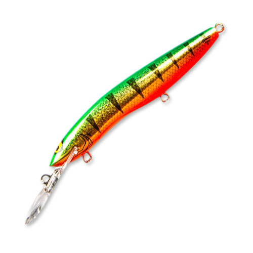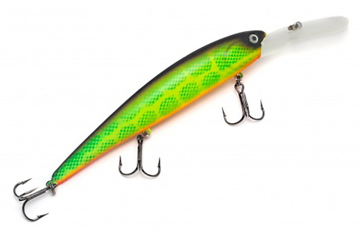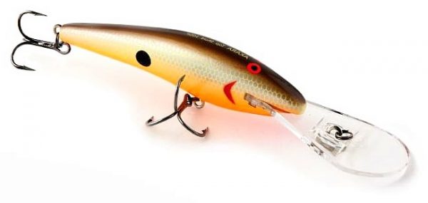 Adequado para a pesca em qualquer clima, para lúcios, zander e predadores marinhos. Fácil e rapidamente atinge uma profundidade de 5,5 metros. Criando efeitos de ruído e atraindo um predador. Além disso, a imitação dos movimentos de um peixe doente contribui para uma grande captura, o wobbler congela durante as pausas. Preço: 890 rublos.