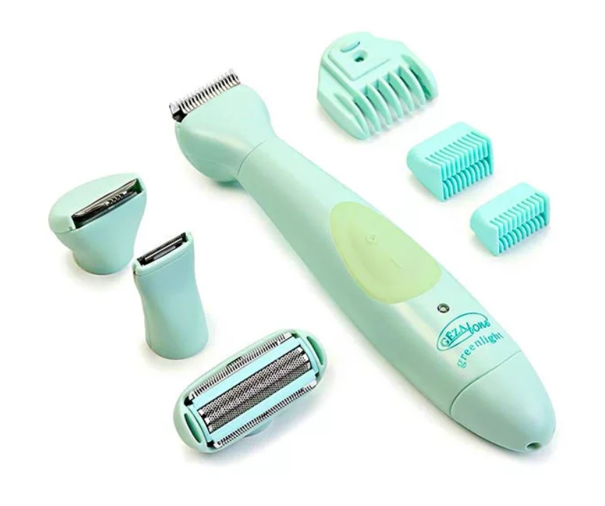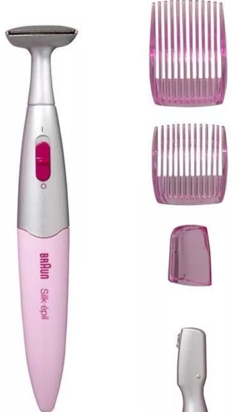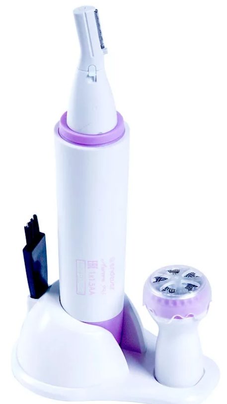 Um dispositivo multifuncional barato e fácil de usar de um fabricante chinês.Adequado para modelar sobrancelhas e cortar pêlos no rosto e no corpo. Existem dois anexos para essas funções. Aquele que para o corpo tem uma forma redonda inusitada. A ferramenta está em um suporte, uma escova é anexada para cuidar dela após os procedimentos. Só pode ser usado para barbear a seco, o corpo é de plástico e permite a passagem da umidade. Há uma luz de fundo que ajuda na remoção de pêlos em locais de difícil acesso. Esta ferramenta também pode ser usada por homens para aparar suas barbas e bigodes. Preço médio: cerca de 1000 rublos.