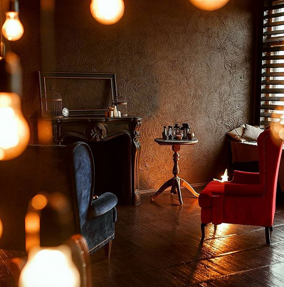 Estúdio interior, composto por um quarto. Área - 50 m2, pé direito - 4,5 M. Decorado em cores escuras com paredes texturizadas e persianas de madeira. Três grandes janelas proporcionam boa luz natural. Poltronas de veludo elegantes contra o pano de fundo de paredes de chocolate e parquet de carvalho escuro criam uma atmosfera de conforto. As filmagens à luz do dia acontecem das 9h às 15h, à noite com iluminação profissional. Vestiário separado. Adereços. No estúdio, você pode usar estrelinhas e confetes. Ao mesmo tempo, 6 pessoas podem estar no estúdio junto com o fotógrafo.