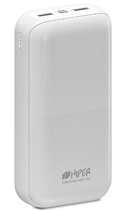 O dispositivo possui uma bateria de polímero de lítio com capacidade de 20 mil mAh, suficiente para 6-7 cargas de um dispositivo móvel produtivo. A bateria diretamente portátil restaura a carga através da porta USB Type-C. Se você usar o adaptador de energia QC, o processo levará menos tempo.O modelo suporta o padrão de carregamento rápido 3.0, que garante uma rápida restauração da energia dos dispositivos.