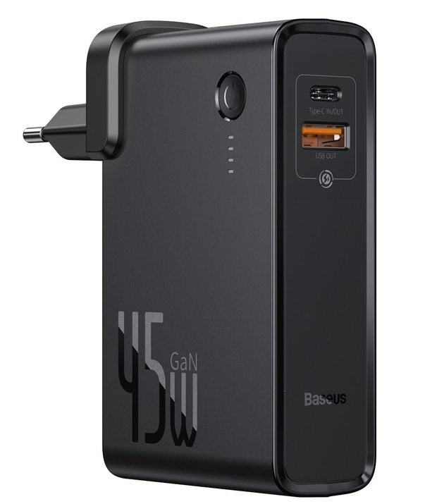 Este power bank inovador recebeu a alta velocidade e praticidade de um adaptador de rede. O dispositivo é equipado com portas de saída USB e Type-C, e também pode ser conectado diretamente à tomada usando um plugue tradicional. Este power bank multifuncional é ideal para recarregar dispositivos móveis. Uma grande capacidade, que é de 10 mil mAh com potência de 45 W, garante uma rápida recuperação de carga de qualquer dispositivo se não houver tomada por perto.