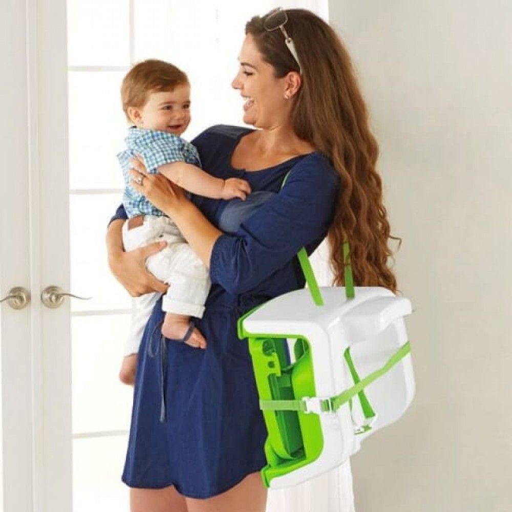 Invenção relativamente recente. Este é um dispositivo muito compacto que será útil para pais móveis que gostam de viajar com seus filhos. Essas cadeiras portáteis vêm em várias modificações - na forma de uma bolsa ou até mesmo uma mala, que é conveniente para levar na estrada e onde você pode colocar o mínimo necessário para o bebê.