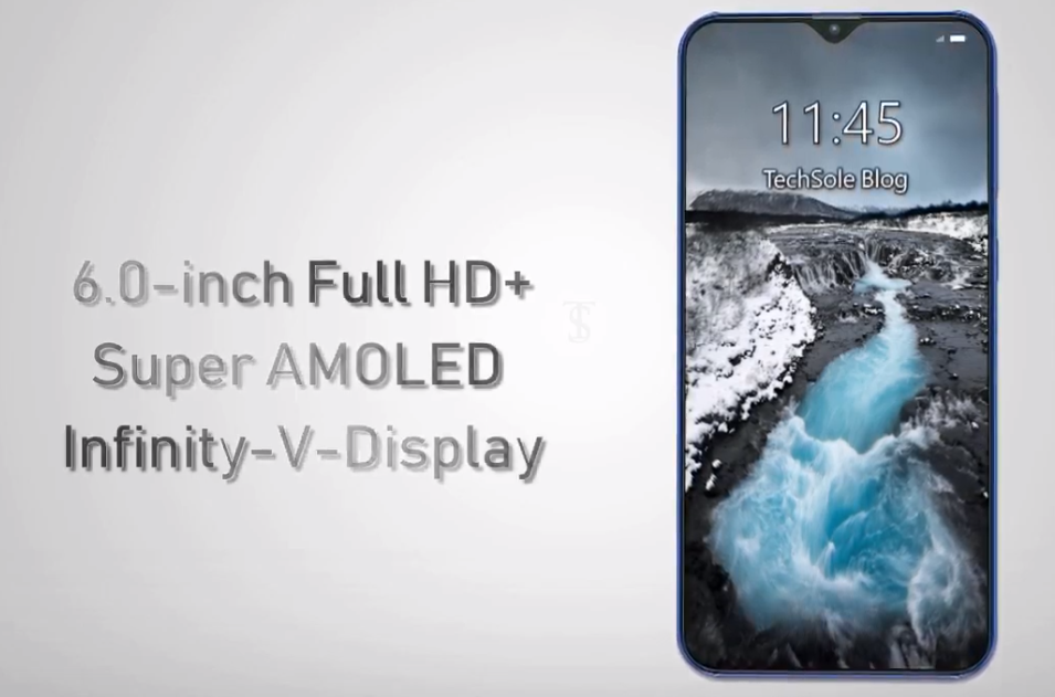 O novo modelo da Samsung receberá uma tela Super Amoled capacitiva, cuja diagonal é de 6 polegadas com resolução popular de 1080x2340, que é classificada como FullHD+ e já se tornou padrão para smartphones sem moldura da nova geração. O número de pixels por polegada da tela será de aproximadamente 430.