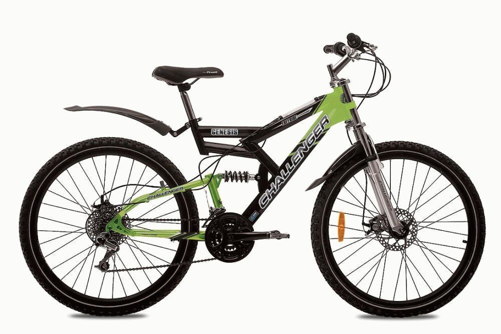 Uma característica distintiva da amostra de duas suspensões é a maior resistência do dispositivo. A estrutura de aço é reforçada com componentes adicionais e há um poderoso suporte de direção.O garfo de suspensão é equipado com uma mola que suaviza os impactos da pista. Freios mecânicos a disco, trabalho de suspensão e 18 velocidades proporcionam confiança ao motociclista em terrenos acidentados. Inclui apoio para os pés e guarda-lamas em plástico. É aconselhável usar para recreação ao ar livre.