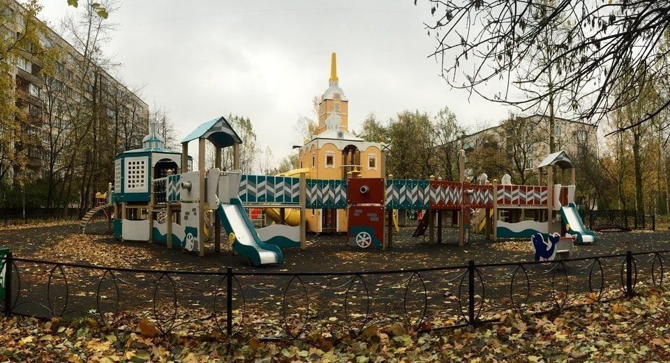 Este playground incomum para crianças está localizado na Rua Prazhskaya, no pátio do prédio 13. O design é feito na forma de um dos símbolos brilhantes e reconhecíveis de São Petersburgo - a Fortaleza de Pedro e Paulo. É um pequeno castelo com escorregas, torreões e passagens. A propósito, esta fortaleza não é a primeira desse tipo. Em Kupchino há outras estilizações históricas.Por exemplo, em homenagem à construção da primeira ferrovia na Rússia, que ligava Pavlovsk e São Petersburgo, uma plataforma na forma de uma locomotiva a vapor foi construída em um dos pátios.