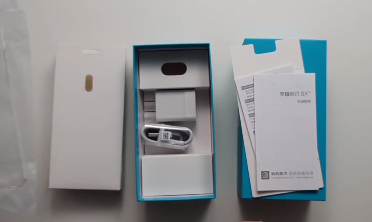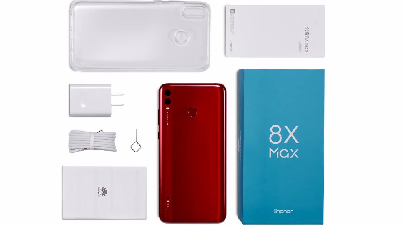 Uma pequena e espaçosa caixa contém uma fonte de alimentação, um cabo micro USB e o próprio Huawei Honor 8X metálico. Uma agradável cor azul com o nome do modelo do gadget foi escolhida para a embalagem.