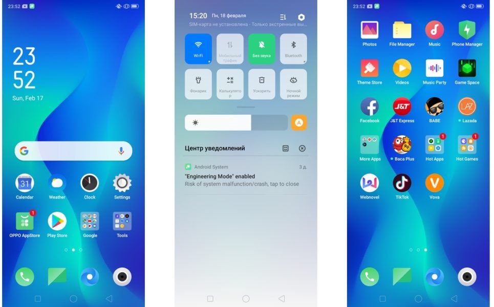 Simplicidade e facilidade de gerenciamento, acesso rápido a comandos e serviços, uma variedade de animações - com base no Android 9.0, o shell ColorOS 6.0 da versão mais recente está instalado. 90% do texto nele é traduzido para o russo. O aplicativo embutido permite que você altere rapidamente o tema. Ao estudar as configurações e seu número, uma pequena pesquisa pode ser observada. Tendo instalado todo o necessário "para você", o resto não interferirá. Existem inconvenientes ao configurar notificações em aplicativos e substituir o aplicativo padrão de chamadas e mensagens. Após as devidas configurações, o sistema irá redefini-los para os aplicativos padrão ou não enviará notificações daqueles instalados pelo usuário.