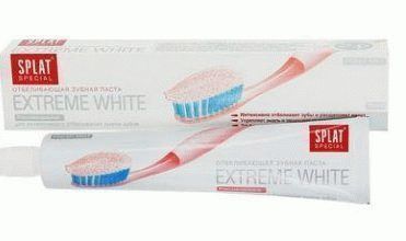 Como resultado do uso mensal, os dentes são clareados em dois a três tons. Splat Extreme White não é recomendado para uso diário, devendo ser alternado com pasta regular ou terapêutica.