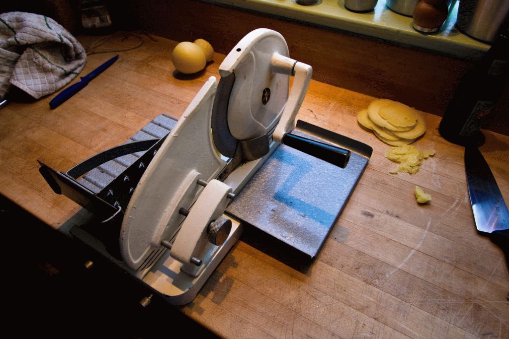 Inclinação ajustável. Alguns modelos de fatiadores podem alterar o ângulo de inclinação de 10 para 15 graus para um trabalho mais conveniente com o dispositivo. Esse recurso não é encontrado em todos os tipos de segmentações.