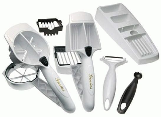 Este é o primeiro cortador sem fio a dispensar fatias acabadas diretamente no frasco. Funciona com uma bateria que dura muito tempo. O conjunto vem com lâminas para cortar fatias de várias espessuras e diversos tipos.Feito de plástico ecológico. Os preços variam entre 3700 - 4000 rublos.