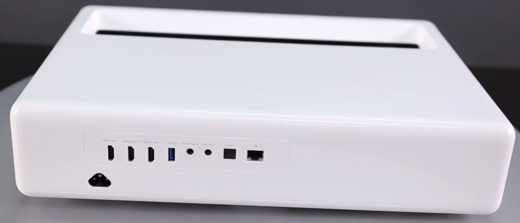 A primeira coisa a notar são as dimensões do dispositivo. Eles são um pouco maiores quando comparados aos vídeos e fotos oficiais da rede, com 41x29x8 cm, o peso do produto é de 7kg, por isso o aparelho não pode ser classificado como prático e de fácil transporte. A novidade, muito provavelmente, visa a instalação em um só lugar, e não a transportabilidade com você para fazer uma apresentação.