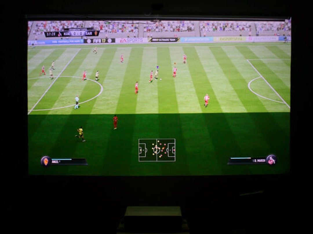 O contraste especificado é 3000:1, que praticamente não é diferente de outros dispositivos que possuem taxas mais altas, por exemplo, 1.000.000:1. Esse valor geralmente pouco explica a verdadeira qualidade da imagem, principalmente quando se trata de um projetor, pois mesmo um pequeno brilho externo afeta o reflexo da projeção. Em uma sala escura, a imagem não é inferior a uma TV LED de alta qualidade.
