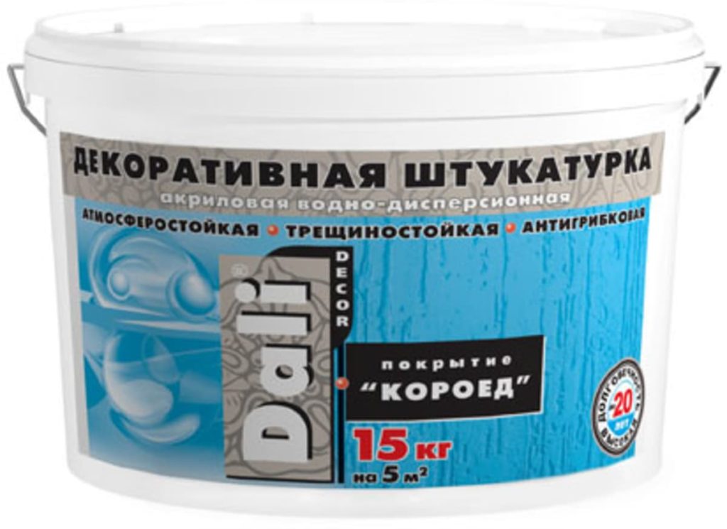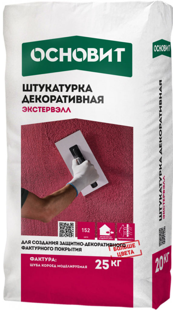 De la marque russe Osnovit. Modélisé et plus plastique, le résultat final de la finition dépend donc de la méthode d'application et de l'idée du maître. Polyvalent - adapté à une utilisation intérieure et extérieure. Lors du choix, faites attention à la taille de la fraction - plus elle est petite, plus la texture sera précise.
