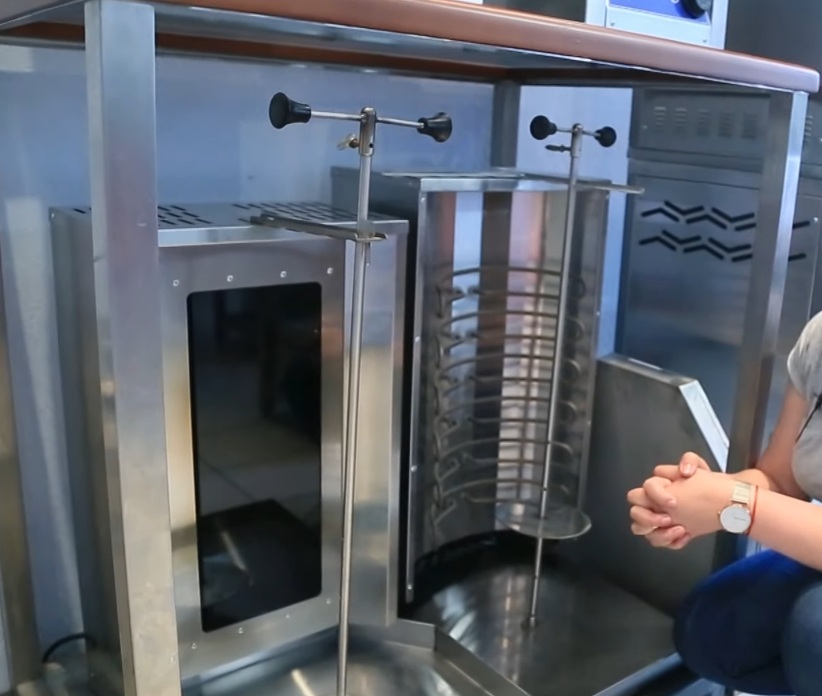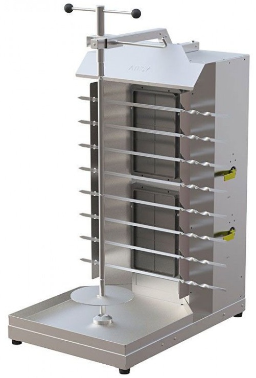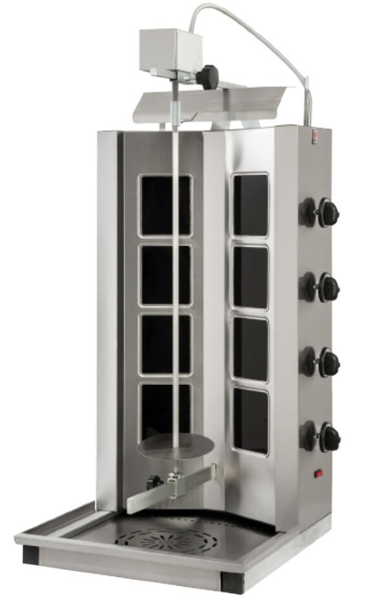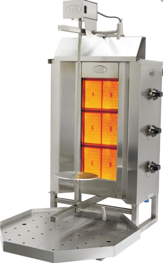 L'installation fonctionne au gaz réduit, est utilisée pour les marchands ambulants, les cafés spécialisés. À l'aide de radiateurs électriques tubulaires qui créent un rayonnement infrarouge, la viande est cuite, plantée sur un couteau spécial. Il tourne autour des brûleurs jusqu'à ce que le produit soit complètement cuit.