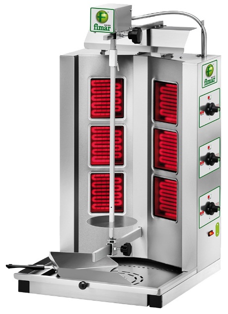 L'installation fonctionne au gaz réduit, est utilisée pour les marchands ambulants, les cafés spécialisés. À l'aide de radiateurs électriques tubulaires qui créent un rayonnement infrarouge, la viande est cuite, plantée sur un couteau spécial. Il tourne autour des brûleurs jusqu'à ce que le produit soit complètement cuit.