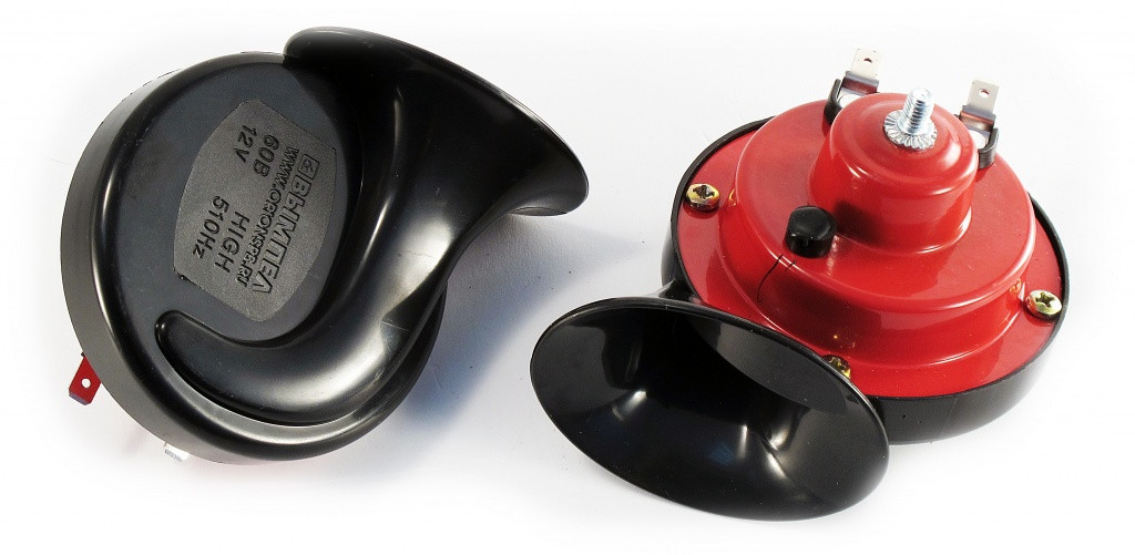 Utilisé dans les voitures avec une tension de 12V. Cet appareil donne le son d'un bon timbre et volume, le son se propage sur une distance décente. Les appareils de ce type ont un boîtier en plastique, qui se caractérise par des dimensions compactes, réalisé dans les couleurs rouge et noir. Le boîtier est équipé d'un joint en téflon qui protège de l'humidité. Ce modèle peut être installé dans deux positions : verticalement et horizontalement. Cela rend le produit confortable à utiliser.