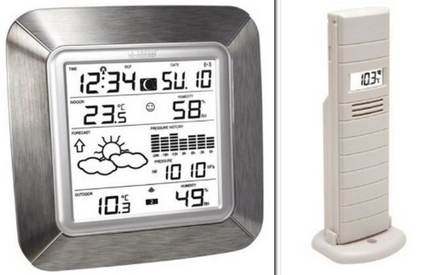 Un appareil climatique avec de nombreuses fonctions et capacités, capable de prédire la météo, équipé d'un capteur externe sans fil, mais pouvant se connecter jusqu'à 3 exemplaires de ces appareils. La fonctionnalité de la station météo vous permet d'enregistrer les relevés de température, de sélectionner une unité de mesure, de mesurer le niveau de confort, de régler l'horloge et l'alarme, le calendrier normal et lunaire.L'écran affiche la pression atmosphérique (il y a un baromètre). La synchronisation automatique DCF-77 est disponible.