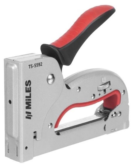 Des appareils peu coûteux sont conçus pour effectuer des travaux de finition textile, fixer des isolations vapeur / acoustique et des films pour serres, serres et autres tâches. Grâce au régulateur de tension du mécanisme, vous pouvez choisir la force d'impact optimale lorsque vous travaillez avec différentes surfaces.