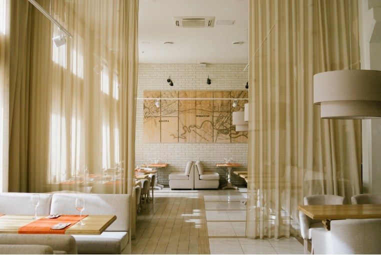Le restaurant impressionne par son design magnifique et riche. Les visiteurs peuvent déguster des plats : cuisine européenne, russe et d'auteur. Il y a aussi un menu interactif pour enfants.