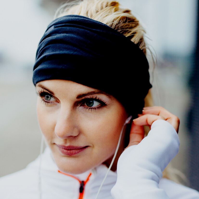Idéal pour le fitness et la course à pied. Il y a un fermoir confortable et solide. Fabriqué à partir de polyester doux au toucher. Il y a un logo. Près de la tête. Les cheveux ne sont pas assommés et ne tombent pas sur les yeux. En cours de jogging sur le front ne roule pas. Absorbe parfaitement l'humidité. Peut se porter aussi bien par temps chaud que froid. Le fabricant fournit un support spécial pour les écouteurs. Résiste au lavage avec fermeté : ne s'assied pas et ne peluche pas.