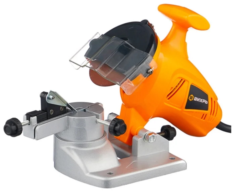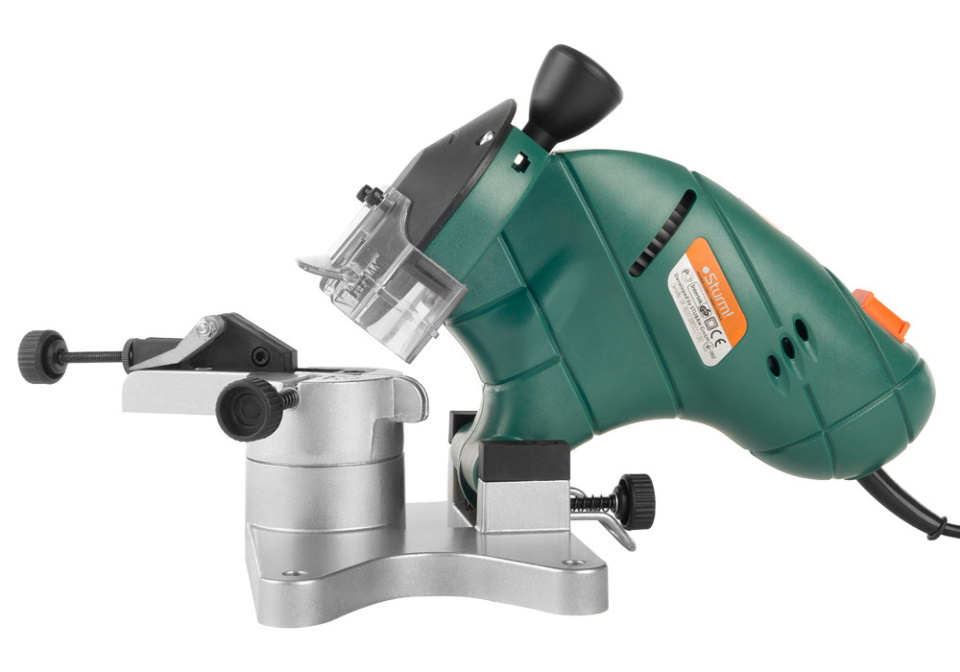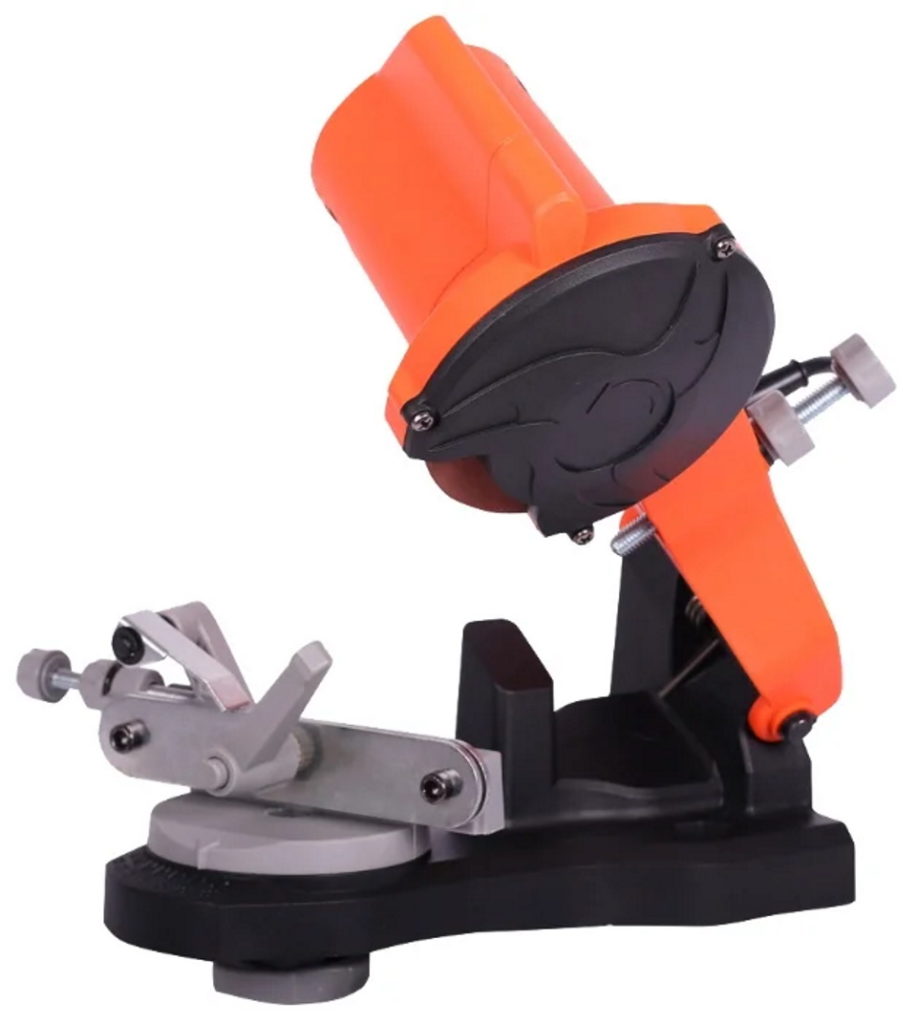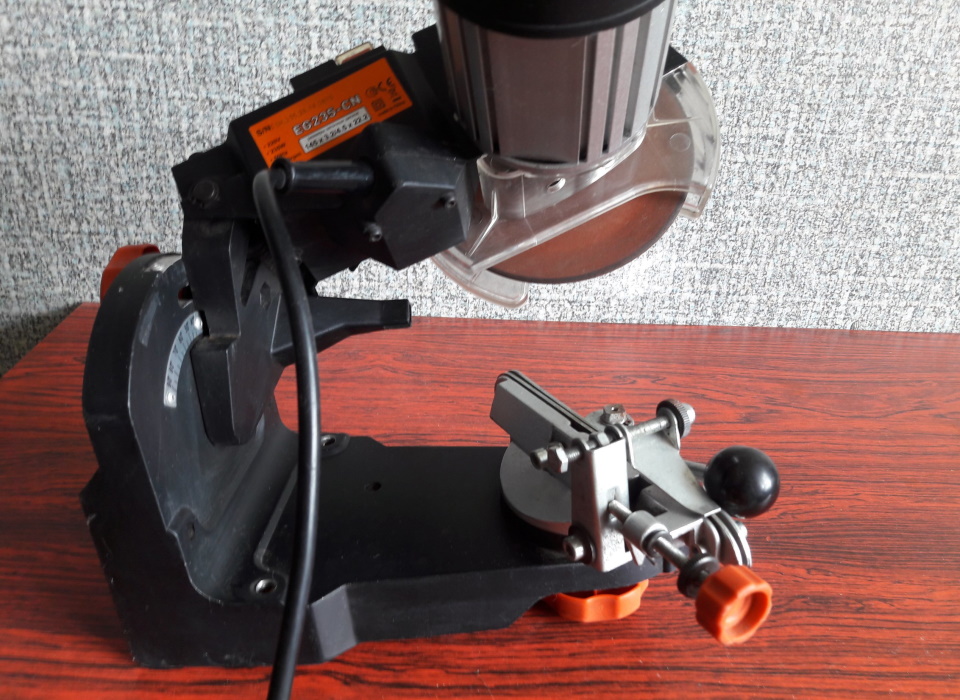 Un modèle pratique pour le traitement rapide d'une tronçonneuse à la maison ou à la campagne. Une fixation obligatoire à un établi est requise. Le travail est simplifié en ajustant l'inclinaison de la surface jusqu'à 30 degrés.