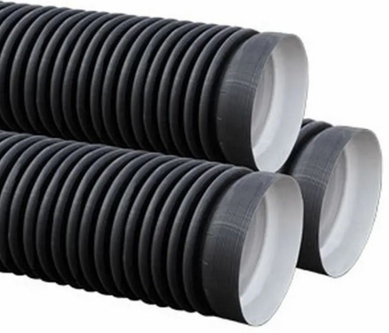 Les produits à partir de ce matériau sont très populaires, car ils conviennent à la formation de canalisations d'égout selon divers schémas complexes, de dimensions et de capacités variées. Les échantillons de polyéthylène ondulé peuvent facilement supporter des températures élevées et basses (jusqu'à +100 Celsius, mais seulement pendant une courte période), se caractérisent par une longue durée de vie (des dizaines d'années), leur surface intérieure ne permet pas la formation de dépôts monolithiques en raison de sa propre douceur et de sa facilité d'installation ne nécessite pas l'utilisation de dispositifs et d'outils spéciaux pour l'installation. Il convient également de noter qu'il s'agit de polypropylène ondulé qui a une résistance particulière, car il se compose de deux couches :