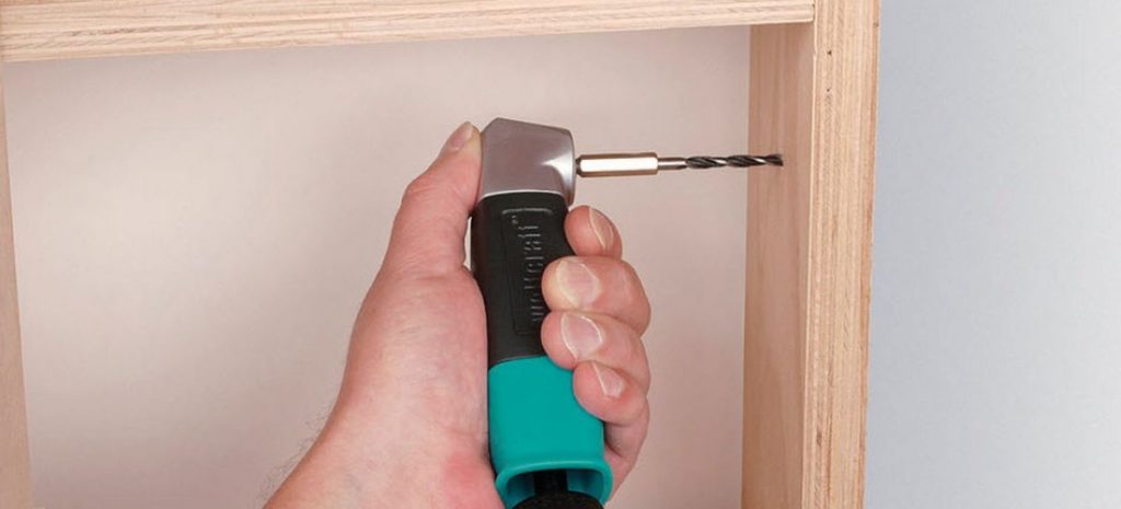 Il est conçu pour percer des trous / visser des fixations dans des endroits où il est impossible de positionner l'appareil de travail à un angle élargi habituel, c'est-à-dire dans des espaces confinés. Le corps de cette buse se caractérise par la présence d'éléments placés à un angle de 90 degrés. Dans le même temps, seule la broche d'entraînement est située à l'intérieur de l'adaptateur, avec la partie travaillante tenant la perceuse / mèche.