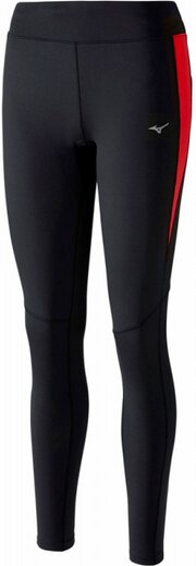 Le modèle femme se distingue par un style près du corps, de larges rayures verticales rouges sur les côtés sur fond uni noir.