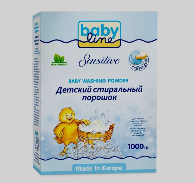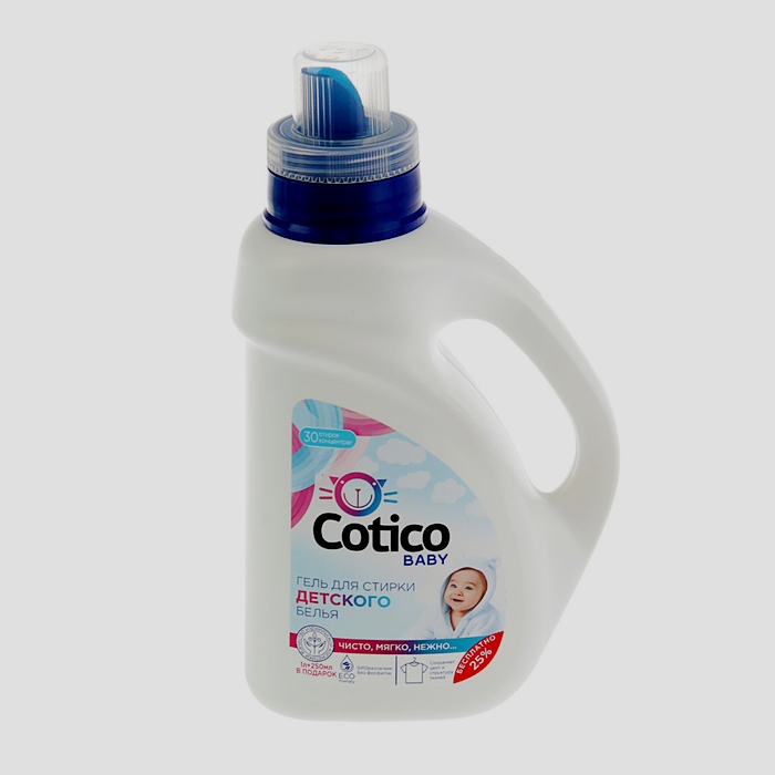 Produs concentrat folosit pentru îngrijirea îmbrăcămintei copiilor.Poate fi folosit inca din primele zile de viata. Rezultate garantate fără fierbere sau înmuiere. Se bazează pe utilizarea agenților tensioactivi anionici și a săpunurilor vegetale. Parfumul este ușor și complet sigur. Aroma este blândă și discretă. Forma de eliberare - gel lichid. Nu este nevoie de agent de clătire.