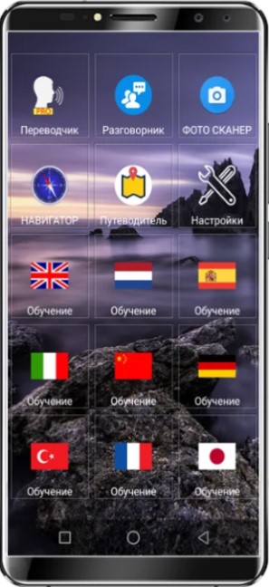 Gadgetul conține cursuri care vă permit să învățați cuvinte de bază. În plus, există o carte de fraze care acceptă mai mult de 30 de limbi. Include cele mai necesare fraze pentru o călătorie în străinătate. GPS și un ghid vă vor ajuta să nu vă pierdeți în altă țară. De asemenea, puteți găsi o scurtă informație despre țară, oraș, evenimente viitoare în traducător.