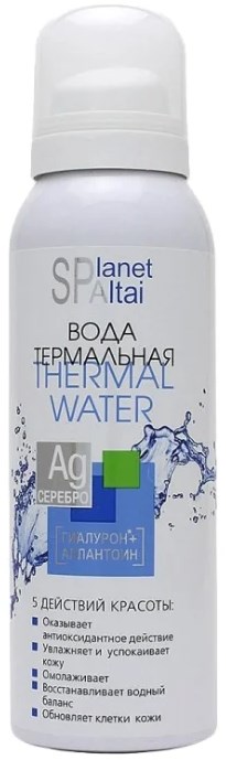 Apa termală Planet SPA Altai este o apă minerală cu un nivel de mineralizare de 5,5 mg eq/zi3 şi pH 8,3. În compoziția sa predomină sulfații și clorurile de calciu, magneziu, sodiu, precum și bor, zinc și alte minerale în cantități mici. În plus, este îmbogățit cu alantoină, hialuronat de sodiu și argint coloidal. Utilizarea regulată a produsului Planet SPA Altai ajută la menținerea echilibrului hidric al pielii, o calmează. Alantoina acționează ca un antioxidant, acidul hialuronic hidratează, argintul coloidal acționează ca un conductor al componentelor utile în straturile mai profunde ale pielii și are, de asemenea, un efect antibacterian.