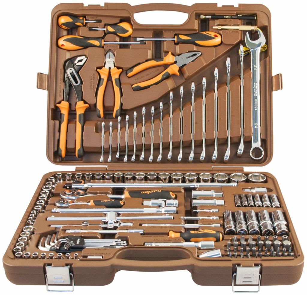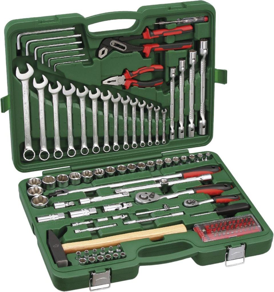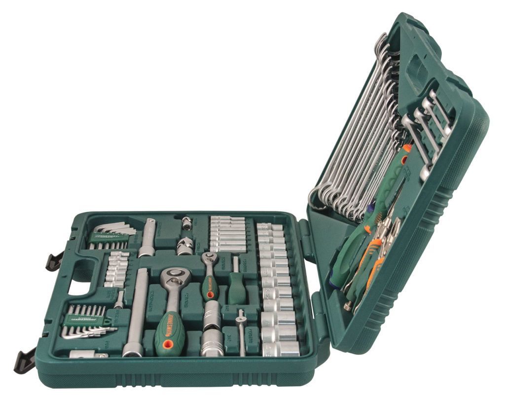 Dobre sa ukázal na malých čerpacích staniciach, ako aj pri opravách doma alebo v teréne. Vzťahuje sa na súpravy v strednom cenovom segmente. Aj tu je celý nástroj vyrobený z vysoko pevných materiálov. Chrómvanádová oceľ sa považuje za veľmi pevnú zliatinu, ktorá nehrdzavie. Ráčne sú vybavené veľmi spoľahlivým mechanizmom. Obsahuje širokú škálu kombinovaných kľúčov a nástrčných kľúčov. Dá sa kúpiť za cenu približne 8 000 rubľov.