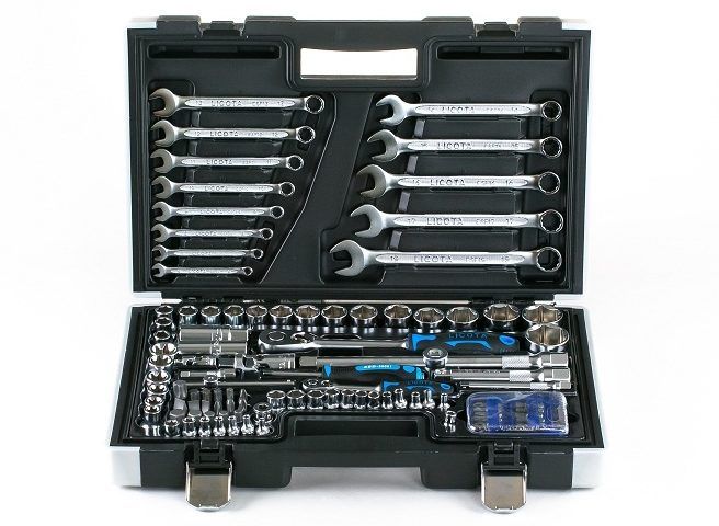 Nástrčkové kľúče, skrutkovače sú vybavené pogumovanými rukoväťami, ktoré bránia vykĺznutiu z rúk počas prevádzky. Všetky položky perfektne sedia v puzdre. Každý prvok je vysoko ergonomický. Súprava váži 8,09 kg. Sada obsahuje 78 komponentov. Môžete si kúpiť za 12 000 rubľov.