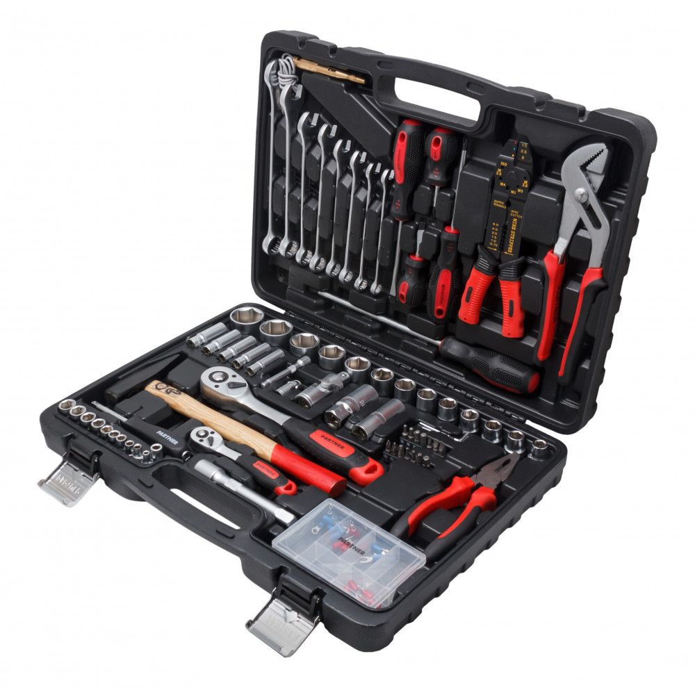 Táto sada obsahuje 107 položiek. S ním nebude prevencia, údržba automobilov strašidelná. Absolútne všetky položky sú normálne uložené vďaka najpohodlnejšiemu a nie objemnému kufru. Trvanlivosť prevádzky je zaručená. Spoľahlivosť poskytuje chróm-vanádiový povlak.