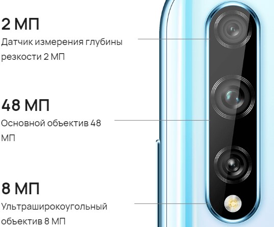 Kupujúci čakajú na trojitý zadný fotoaparát so 48 hlavnými megapixelmi s automatickým zaostrovaním. Širokouhlý fotoaparát má 8 megapixelov s malou clonou 1,8 bez automatického zaostrovania. Tretí fotoaparát je určený na rozostrenie pozadia pri portrétnych záberoch.