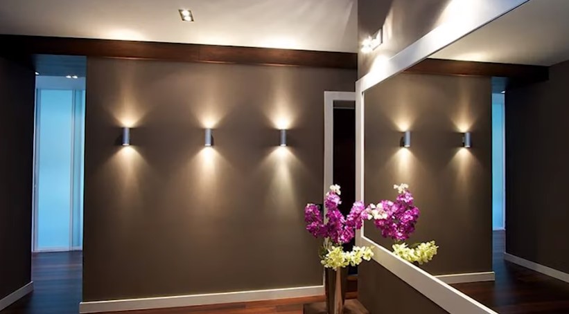 - v kúpeľni - nástenné osvetlenie sa používa zriedkavo kvôli malým rozmerom miestnosti, ale ak to priestor dovoľuje, potom je vhodné umiestniť svietniky nad zrkadlo z oboch strán, v kombinácii so stropným osvetlením v prevedení a type svetelného toku . Pre dodržanie bezpečnostných pravidiel je dôležité používať zariadenia so zvýšenou úrovňou ochrany proti vlhkosti IP s indikátorom 44 a vyšším.