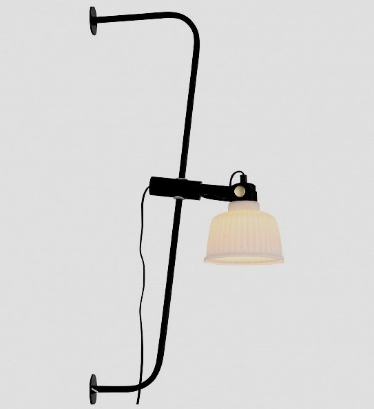 Zariadenie zaujme svojou originalitou: základňu v tvare zakrivenej rúrky je možné namontovať na stenu vertikálne alebo horizontálne, kužeľ z matného skla sa pohybuje pozdĺž základne a otáča sa v rôznych smeroch. Drôtový spínač.